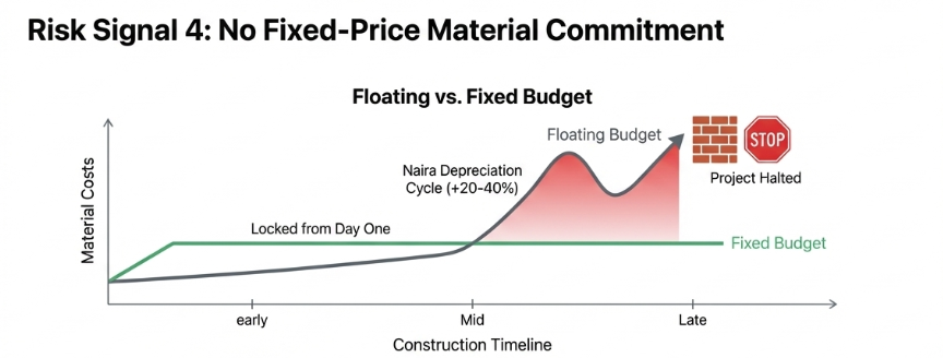 Nigeria’s construction cost environment is volatile. Cement, structural steel, and imported MEP equipment can increase 20 to 40 per cent year-on-year during a naira-depreciation cycle.